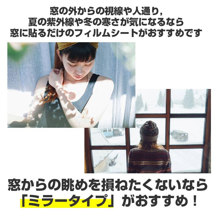 ※くもりガラスや凹凸のあるくもりガラスは正しく貼っても内側面がミラーのように見える事がございます。ご了承の上ご購入ください。