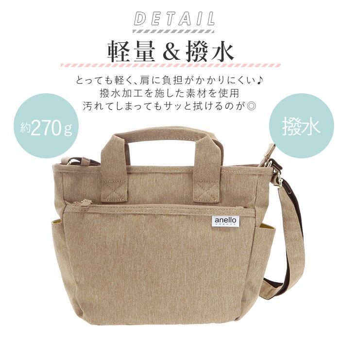 ・anello GRANDE でかねてより人気の手触りのよい杢調ポリエステル素材を使用し、水滴や汚れに強いはっ水加工を施したトート型ショルダーバッグ。