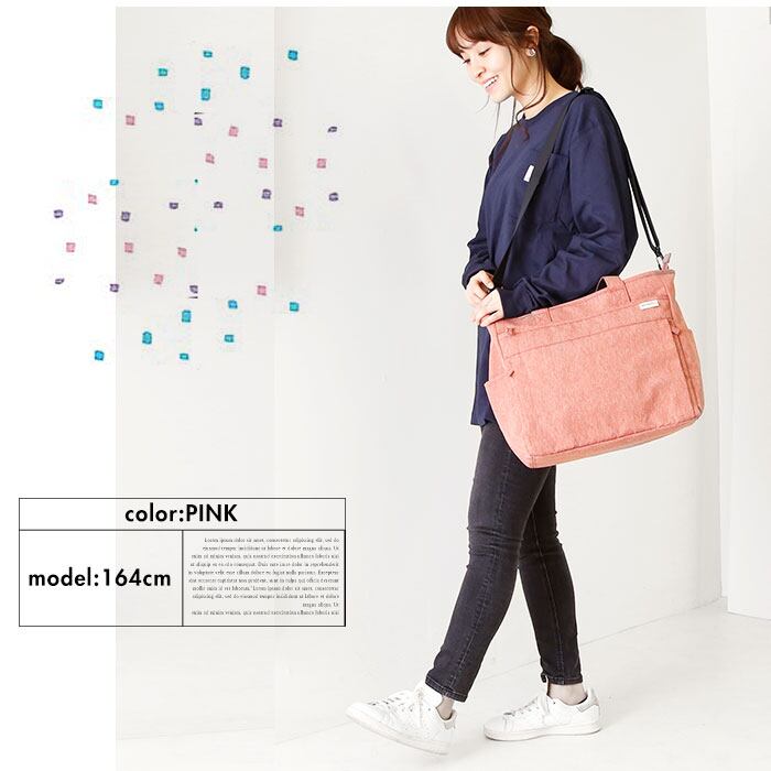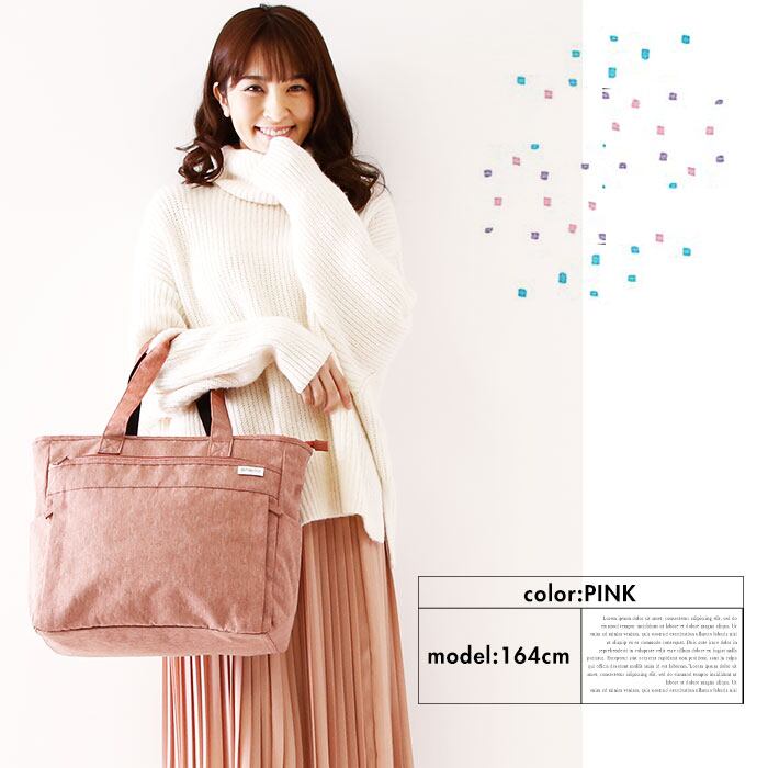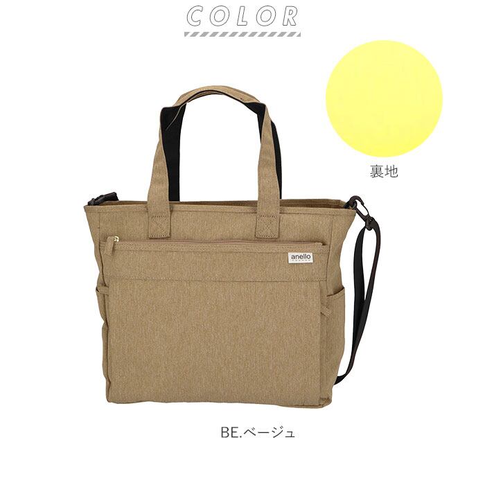 ・anello GRANDEでかねてより人気の手触りのよい杢調ポリエステル素材を使用、水滴や汚れに強いはっ水加工を施した2WAYトート型バッグ。