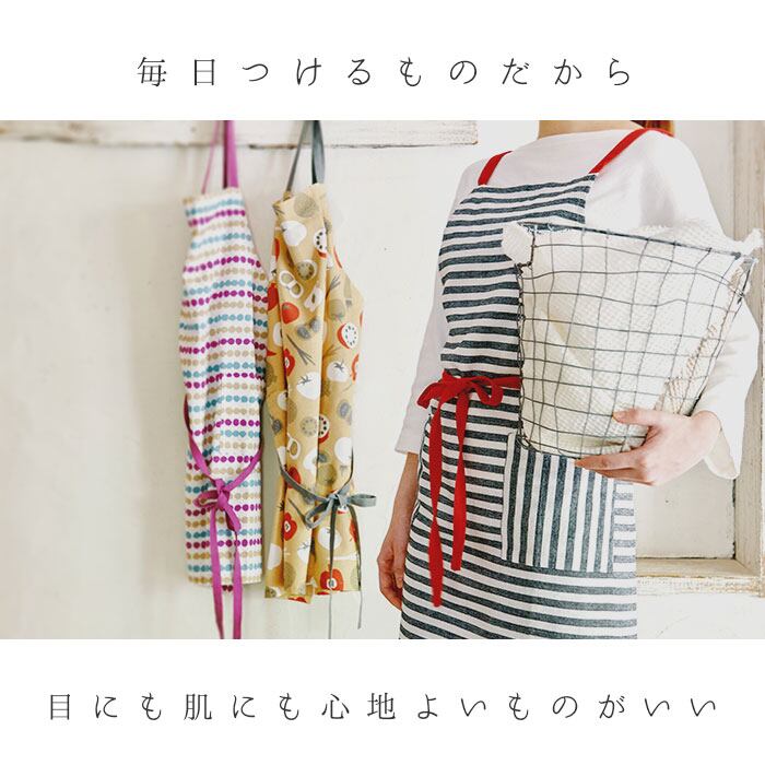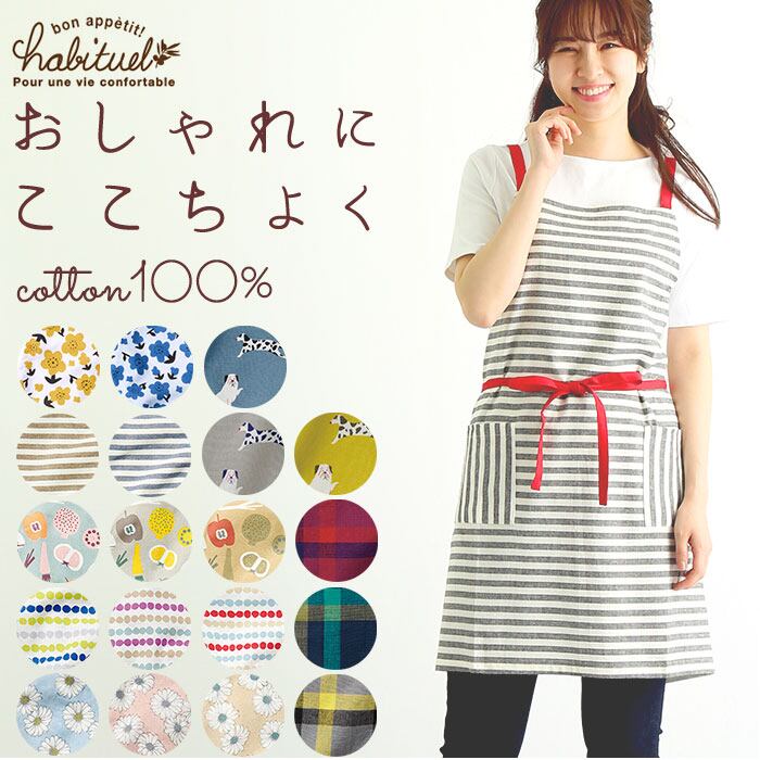 ・日常使いしやすいデザインをコンセプトとする「habituel」から、前結びタイプのエプロンが発売。