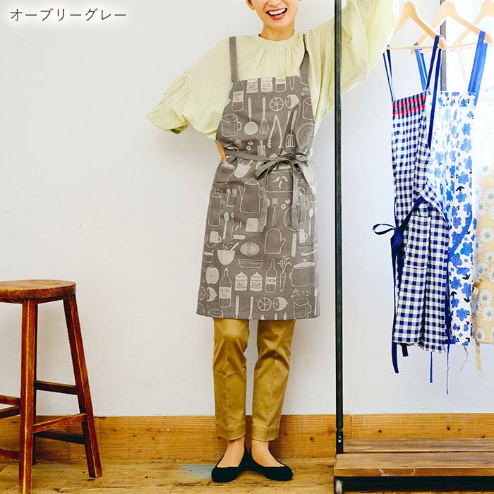 ・日常使いしやすいデザインをコンセプトとする「habituel」から、前結びタイプのエプロンが発売。