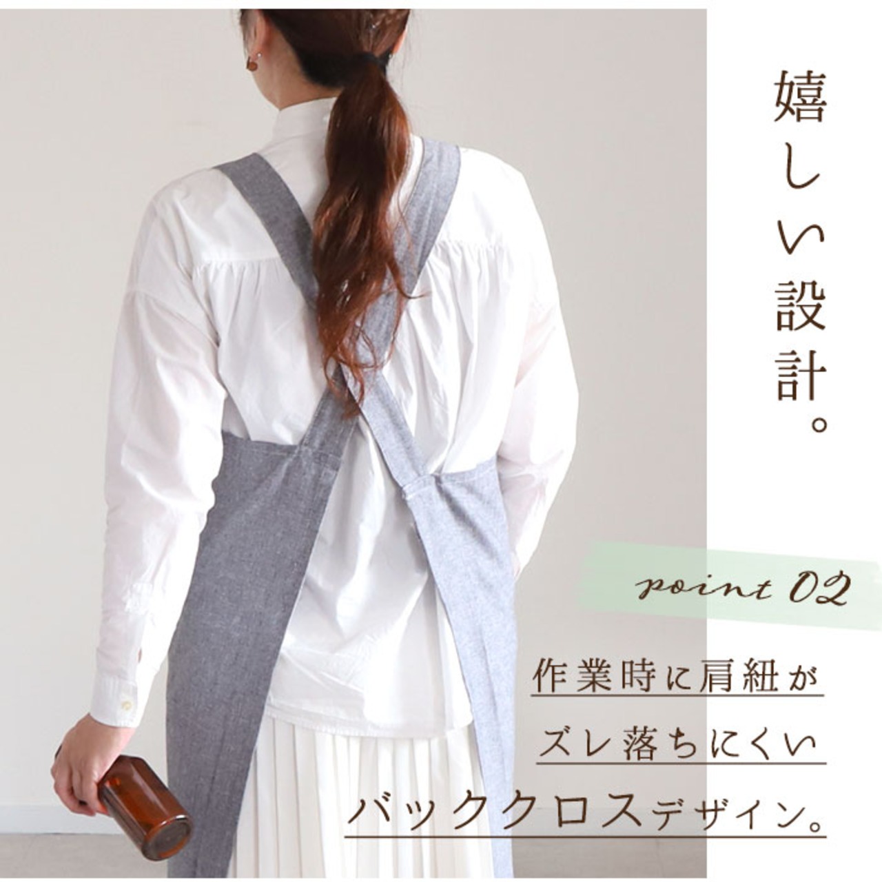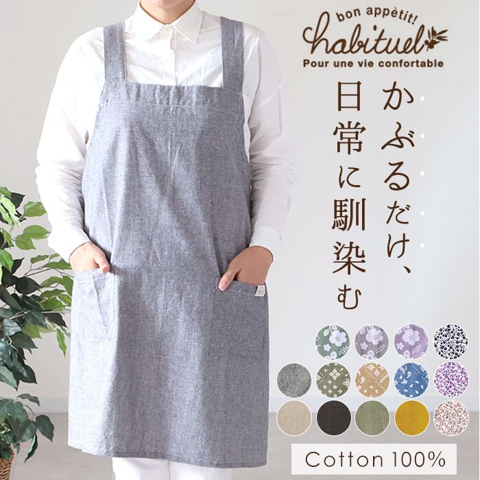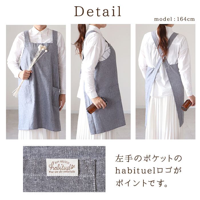 ・日常使いしやすいデザインをコンセプトとする「habituel」から、バッククロスタイプのエプロンが発売。