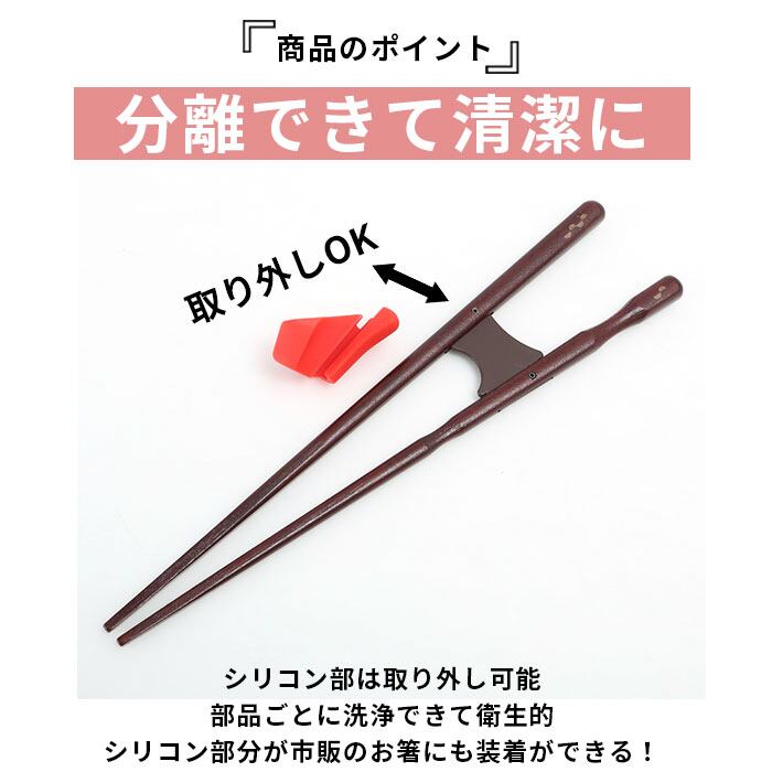 ・シリコン部は取り外し可能なので、市販のお箸にも装着ができる。