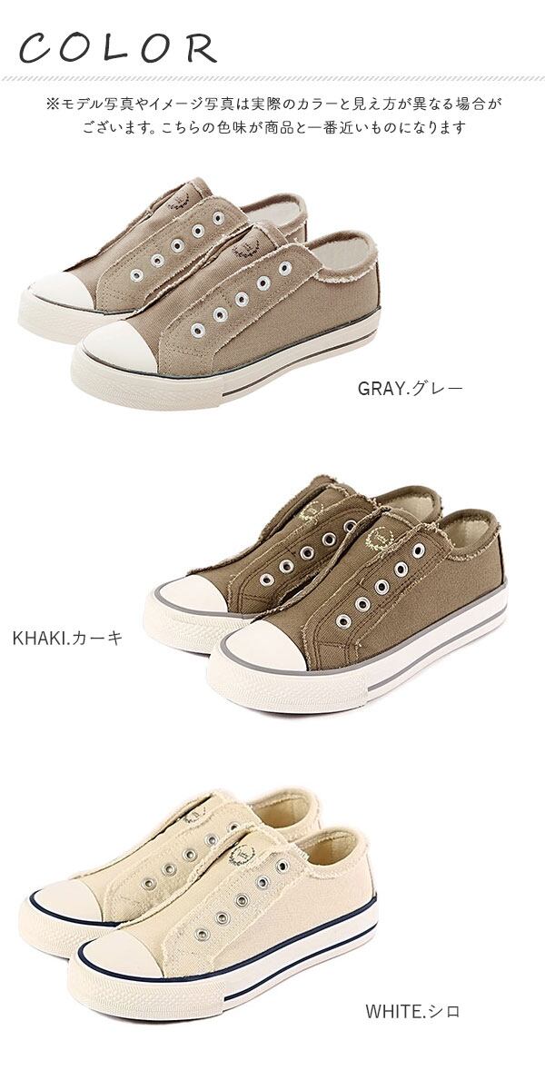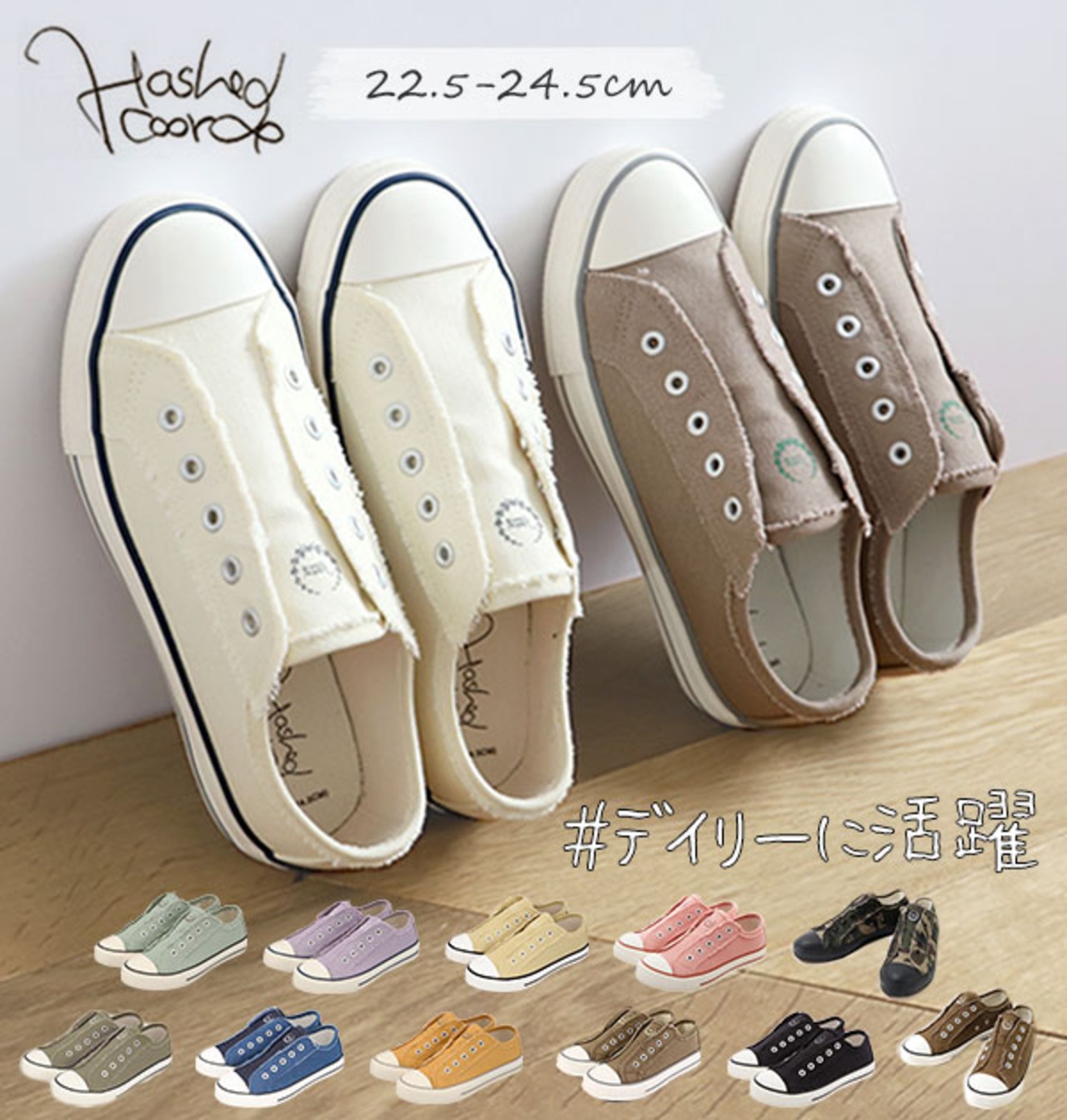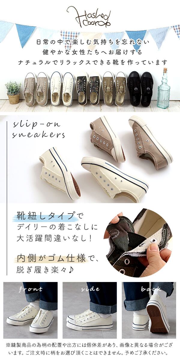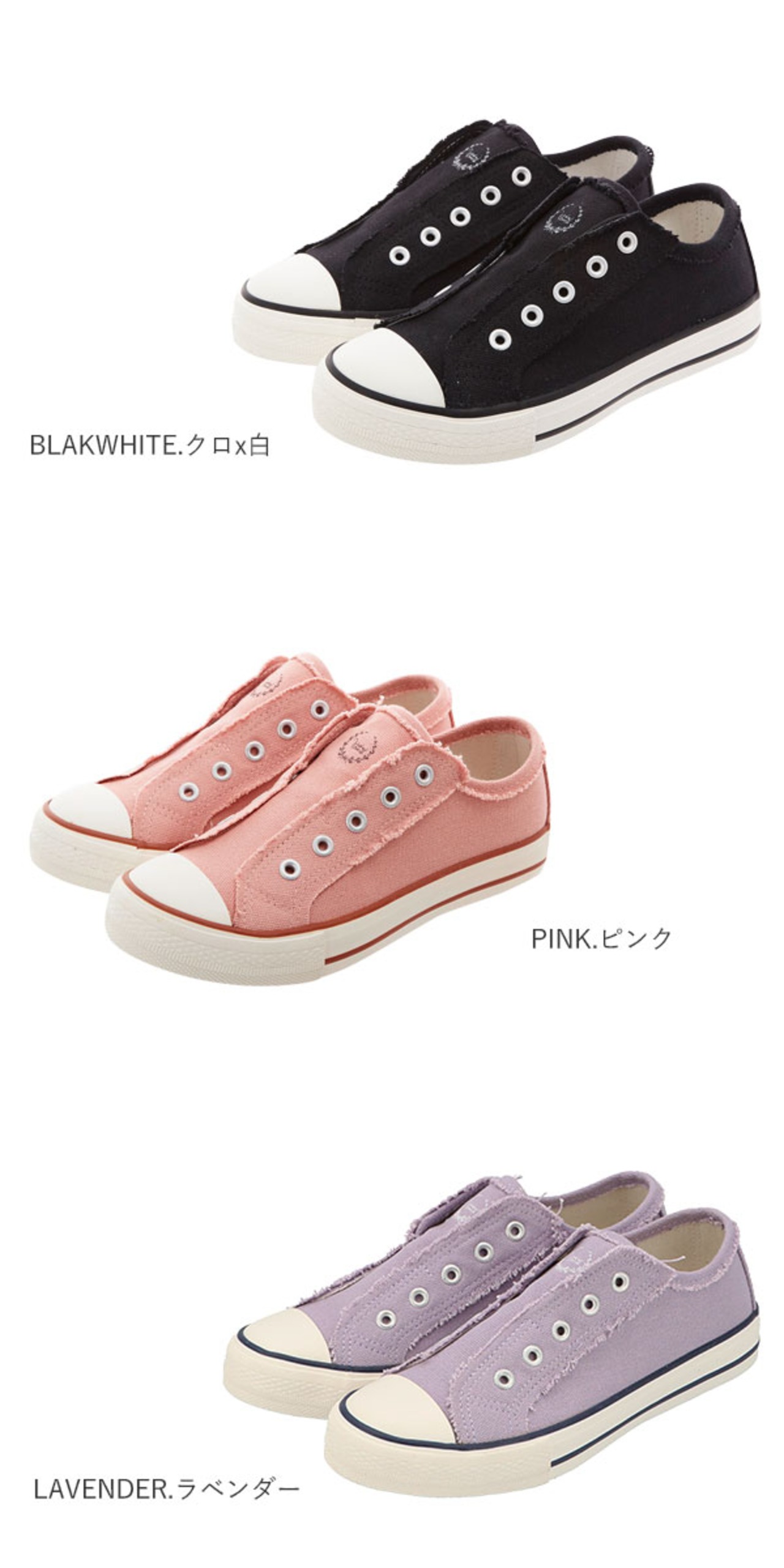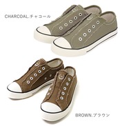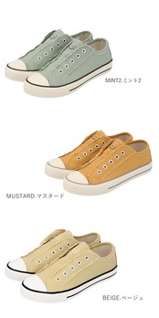 デイリーに活躍☆おしゃれで履きやすいスリッポンスニーカー。紐無しタイプのすっきりとしたデザインは、デイリーの着こなしに大活躍!ベロ部分の内側がゴム仕様になっており、脱ぎ履きラクチンです。カラーによって印象が異なるので、お気に入りを選んで♪