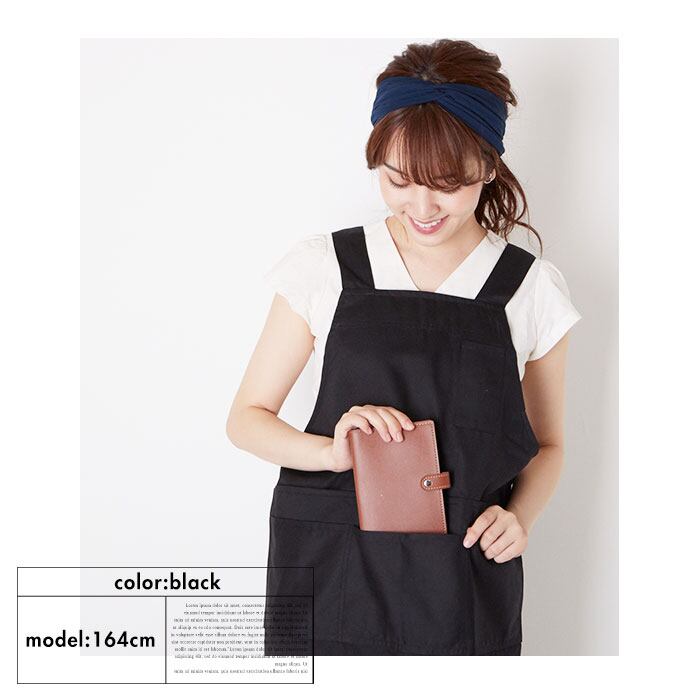 お腹の部分にあるポケットは広く、後ろのボタンは2段階に調節できます。撥水加工で濡れる作業にも便利な、使いやすいエプロンです。