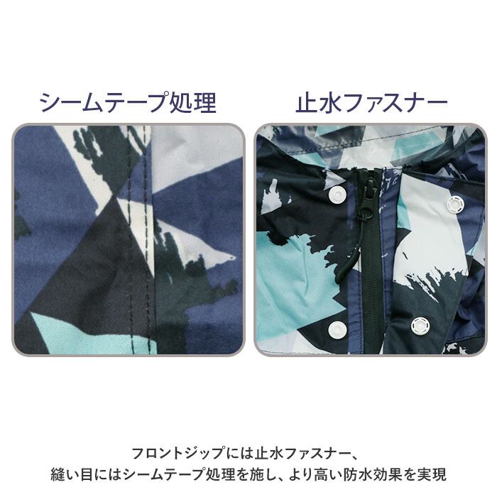 ・フロントジップには止水ファスナー、縫い目にはシームテープ処理を施し、より高い防水効果を実現。