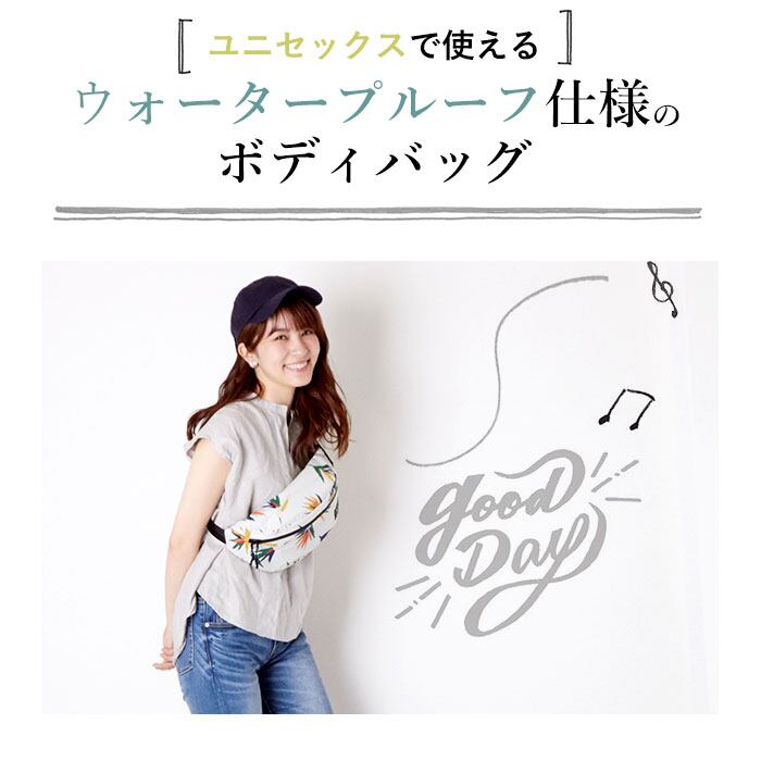 ユニセックスで使えるウォータープルーフ仕様のボディバッグです。生地に防水・はっ水加工を施しているので、海や山のレジャーに大活躍!急な雨にも対応できます。止水ファスナー付きで、水が浸入しにくいのも嬉しいですね。