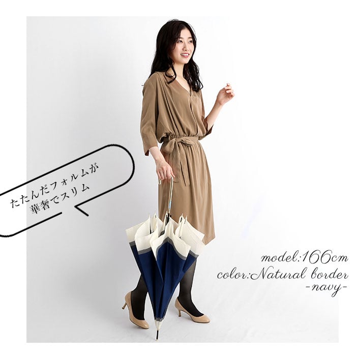 ・高級感のあるフェイクレザー製の手元ハンドルは、傘を持つ指先をよりたおやかに演出する華奢なフォルム。