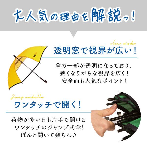 ・アウトドアプロダクツのキッズ長傘です。透明部分があるので、傘をさしても前が見やすく安全です。カラーのバリエーションも豊富で、雨の日が楽しくなります☆入学・入園のプレゼントにも喜ばれます♪
