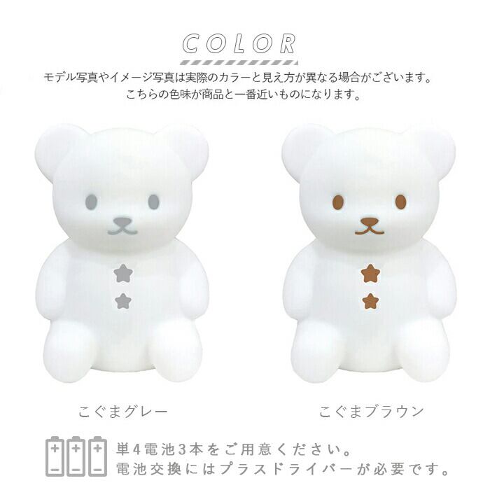 ・安心・安全なシリコン素材でできた、柔らかくやさしい触り心地のこぐまのおやすみライト。