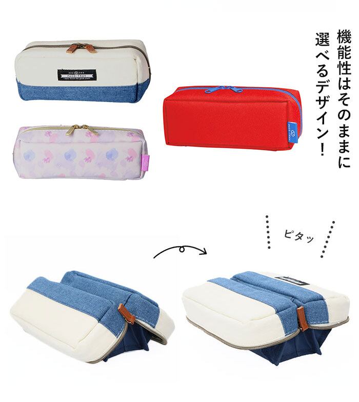 ・フェイクレザー+ゴールドファスナーがエレガントな「シャーベット」シリーズ、ナチュラルなキャンバス素材+レザー調ファスナースライダーを使用した「デニム」シリーズの2タイプをラインナップ!学生さんだけでなく、オフィスでも使いやすい洗練されたデザイン♪