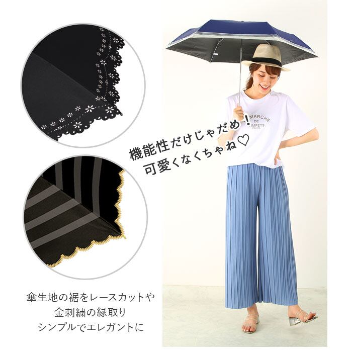 ※この製品は紫外線遮蔽・遮光・遮熱効果を目的とした日傘です。生地にはPUコーティングを施しており、はっ水効果もあるため雨の日にもご使用いただけます。