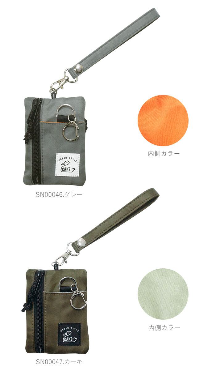 KAKSIの伸び縮みするリール付きパスケースです。コンパクトなサイズでしっかりしたポリエステル生地を使用。前面と背面にICカードや定期券などを入れられるファスナーポケットが1つずつあります。前面にはもう一つ小さなキーホルダー付きのキーポケットがあり、鍵とパスカードをセットで収納できるほか、バッグなどに固定して使えます。普段はバッグのベルトなどに固定し、リールでさっと手元に伸ばして使えるのが便利なパスケースです。