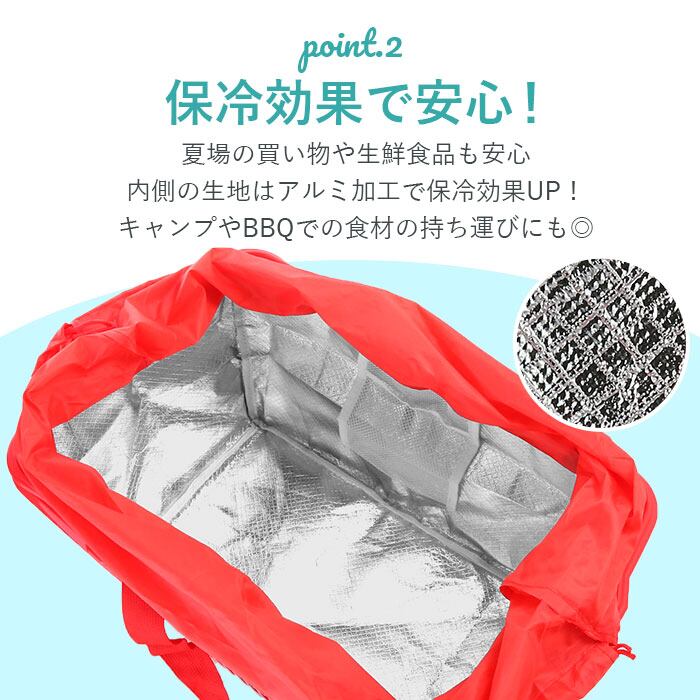 ・内側の生地はアルミ加工で保冷効果UP!お買い物バッグとしてはもちろん、キャンプやBBQでの食材の持ち運びにも◎