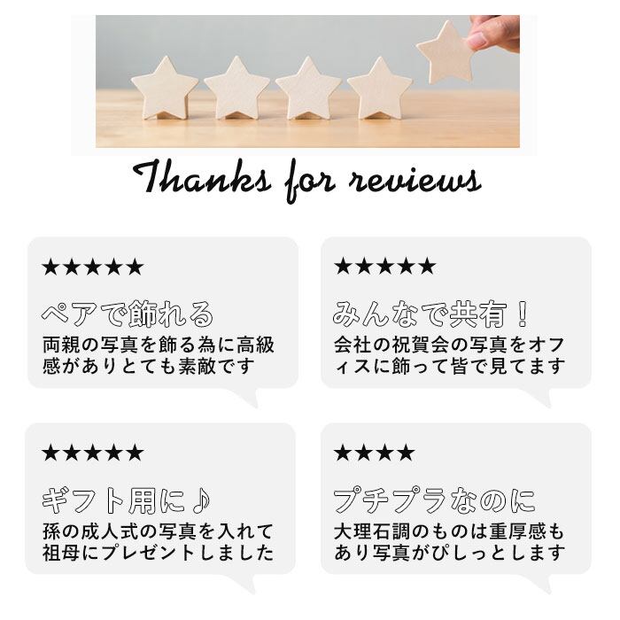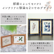 ・大理石や木目調の地模様にゴールドのラインが入った華やかな写真立て。