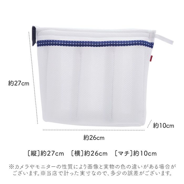 ・便利なキャッチフック付きでネット側面のループや上部にあるドット柄の帯の部分と貼り付け可能なので洗濯機などに掛けておける。
