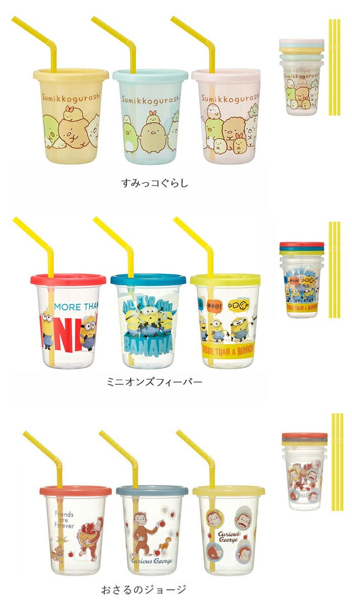 ・フタがついてこぼれにくい!人気キャラクターのストロー付タンブラー(230ml)3個セット