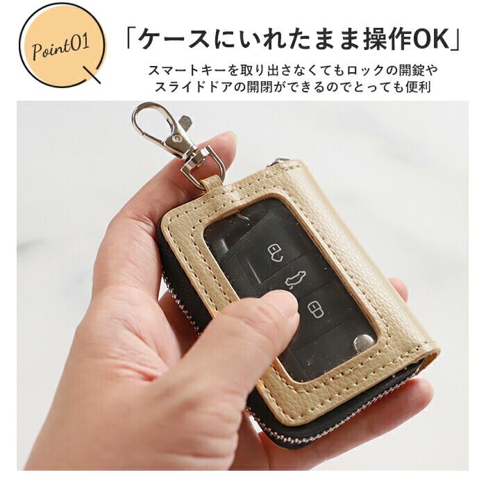 ・キーケース裏側の透明ウィンドウで、スマートキーをケースに収めたまま、ラクラク操作が可能!