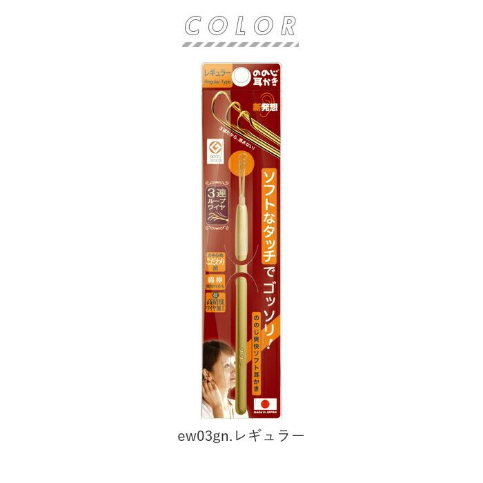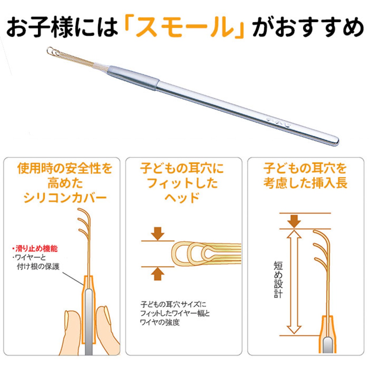 ・特許取得の独立した3つの円形ワイヤーループ採用。それぞれ独立して動くループが耳の穴の奥の複雑な凹凸にこびりついた耳垢もしっかりとかき出す。表面のなめらかなワイヤーは耳触りの優しいかき心地。