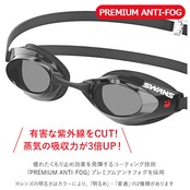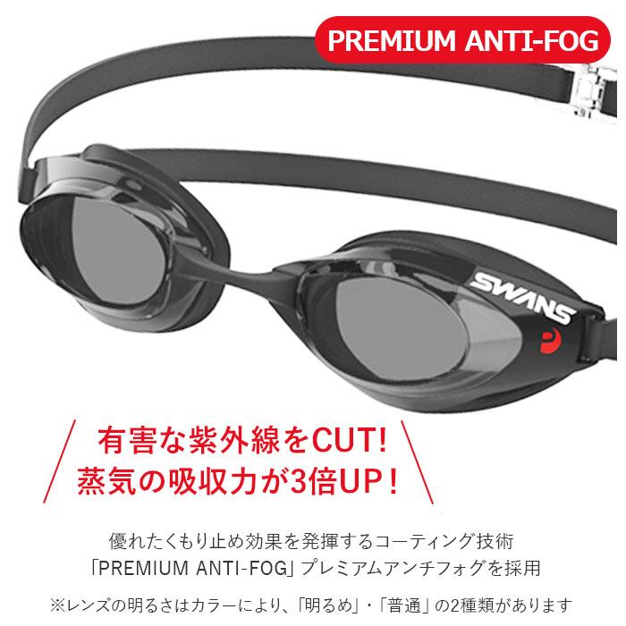 ・有害な紫外線をカットし、屋外での水泳競技でも安心して使用できる。(※レンズの明るさはカラーにより、「明るめ」、「普通」の2種類があります。)