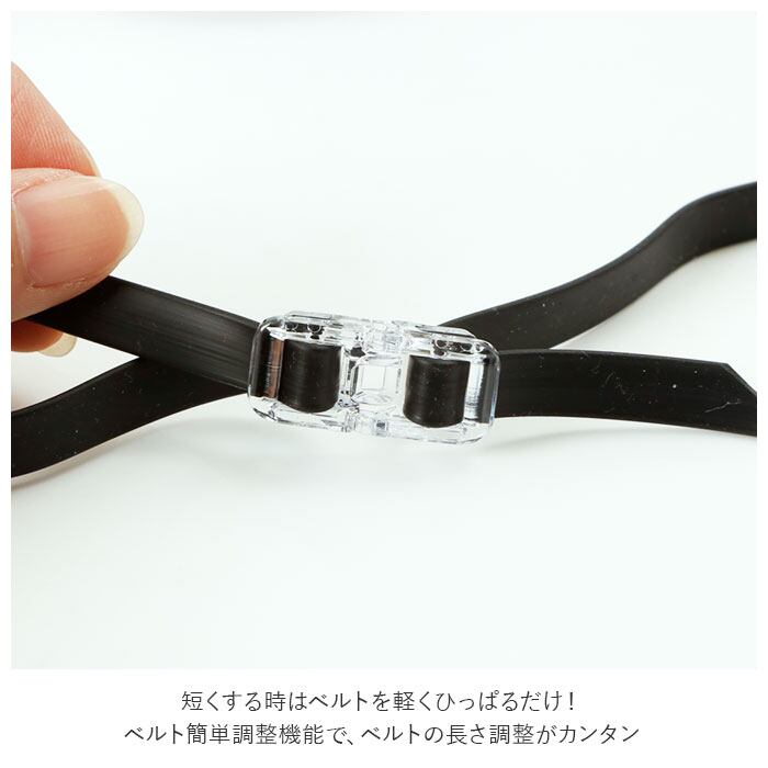 ※快適にご使用いただくために、顔にフィットするよう、ベルトの長さ調節をしてからご使用ください。フィット感が悪いと水もれの原因になったり、ゴーグル装用時に不快感が生じます。