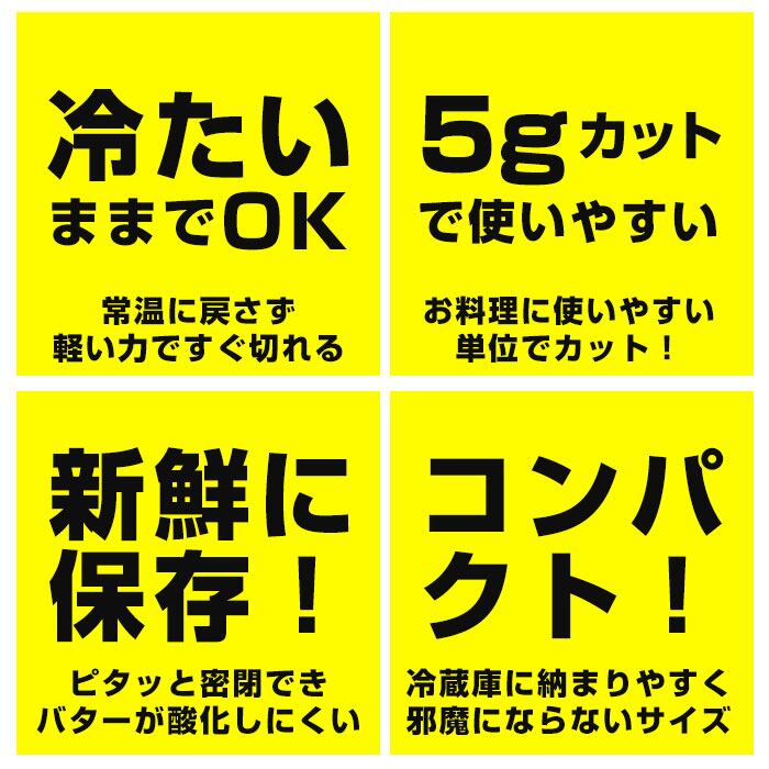 ※カットしたバター同士がくっつくことがあります。使用の際は剥がしてください。また、バターが柔らかすぎる状態でカットすると、剥がしづらくなることがあります。