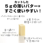 ・200gのバターでカットした場合、料理やお菓子作りに使いやすい約5gにカットしてくれる。(150gのバターは約3.7gにカット)