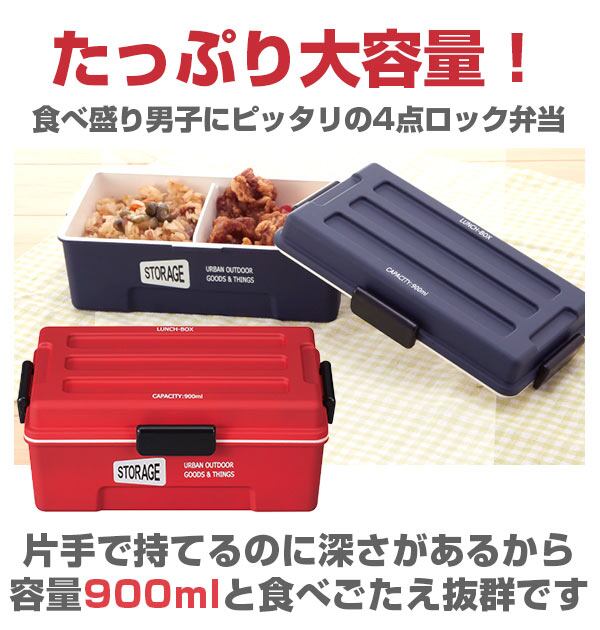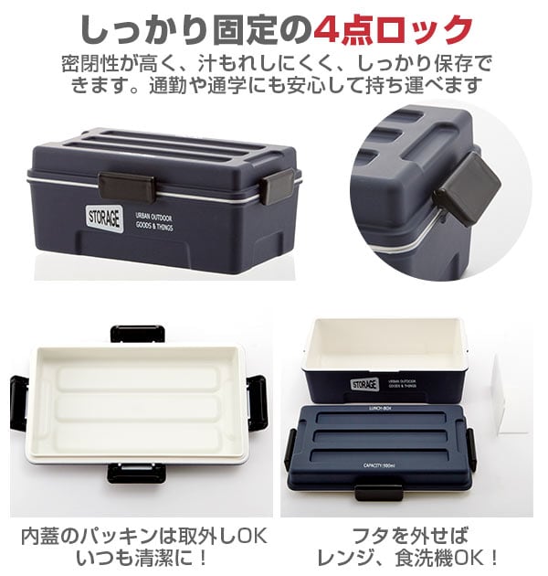 弁当箱 ストレージ STORAGE ランチボックス ランチ 弁当 男子 メンズ 大容量 1段 通販 密封 密閉 仕切り付き 4点ロック 900ml ドーム型 コンテナランチ スタイリッシュ レトロ 工具箱風 食洗機 OK 電子レンジ 対応 お弁当グッズ shw-2002 268596