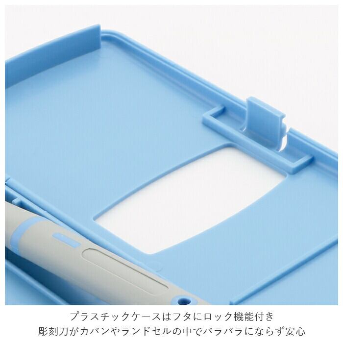 ・プラスチックケースはフタにロック機能付きで、彫刻刀がカバンやランドセルの中でバラバラにならず安心。