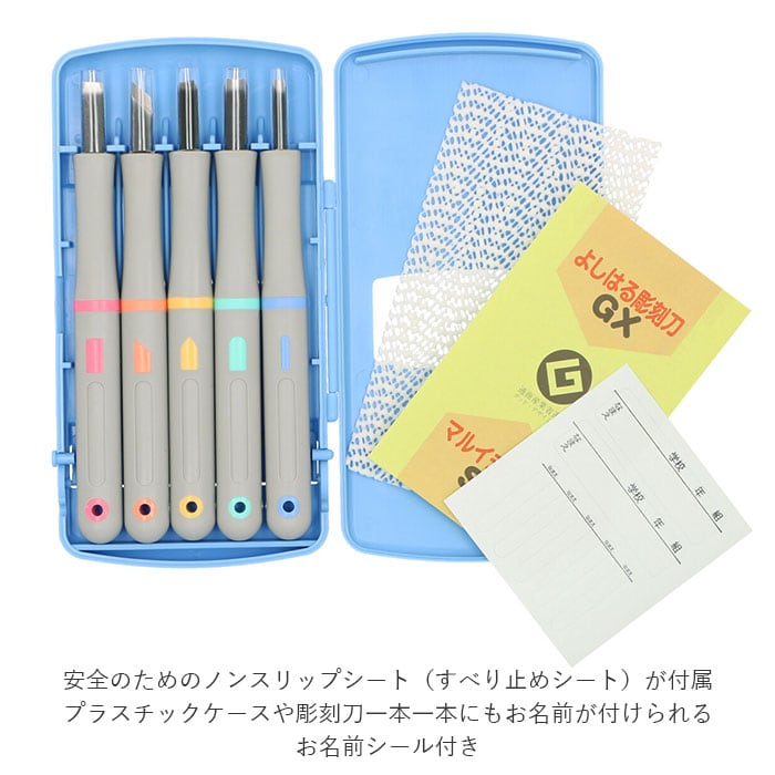 ・プラスチックケースや彫刻刀一本一本にもお名前が付けられるお名前シール付き。お友達の彫刻刀セットとの取り違えも防げる!