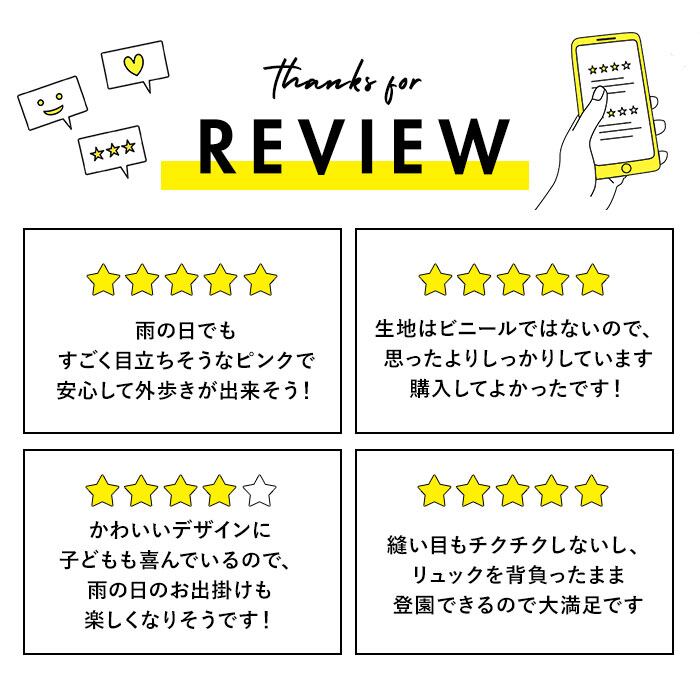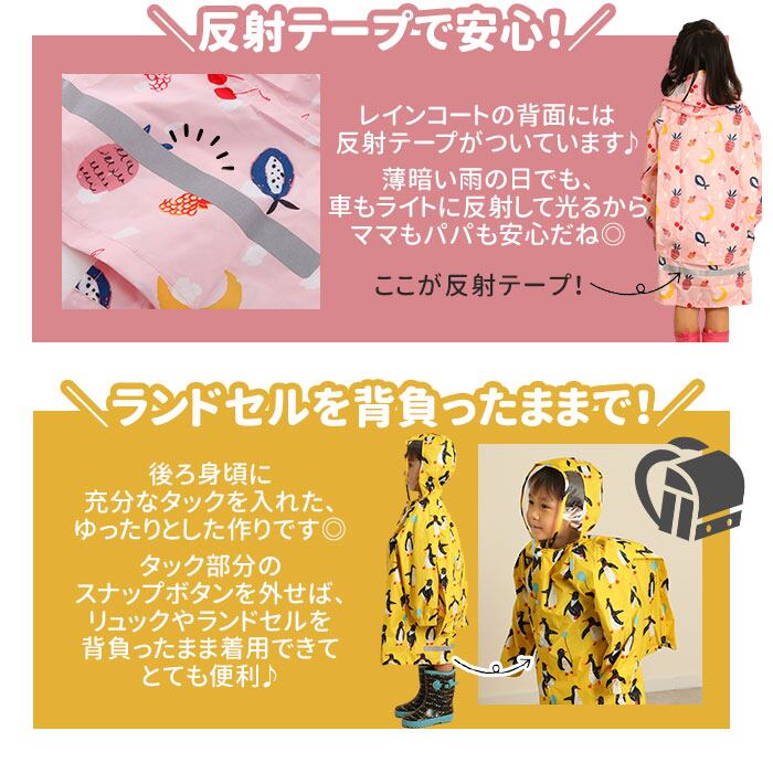 ・背面には反射テープつき。薄暗い雨の日でも、車のライトに反射して光るので安心。