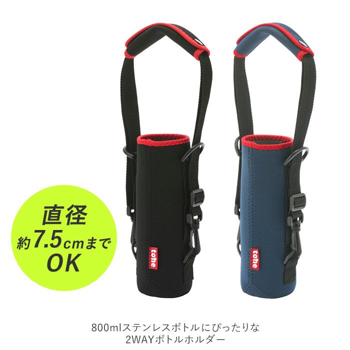 ・800mlステンレスボトルにぴったりな、2WAYボトルホルダー。直径約7.5cmまでのマイボトルがすっぽり収納可能。