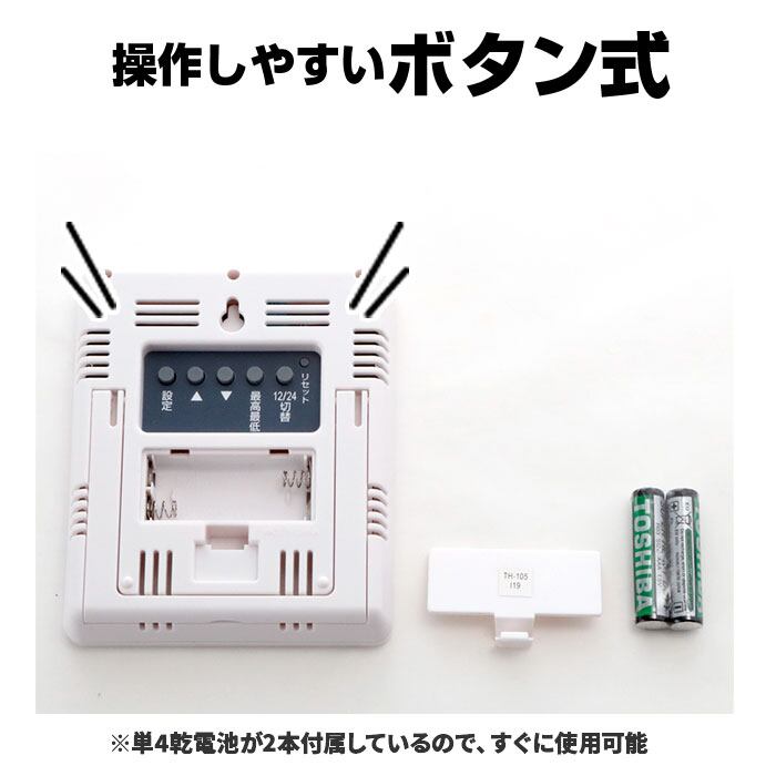 ・温湿度計としてはもちろん、時計としても使えて便利(12時間/24時間切替)。
