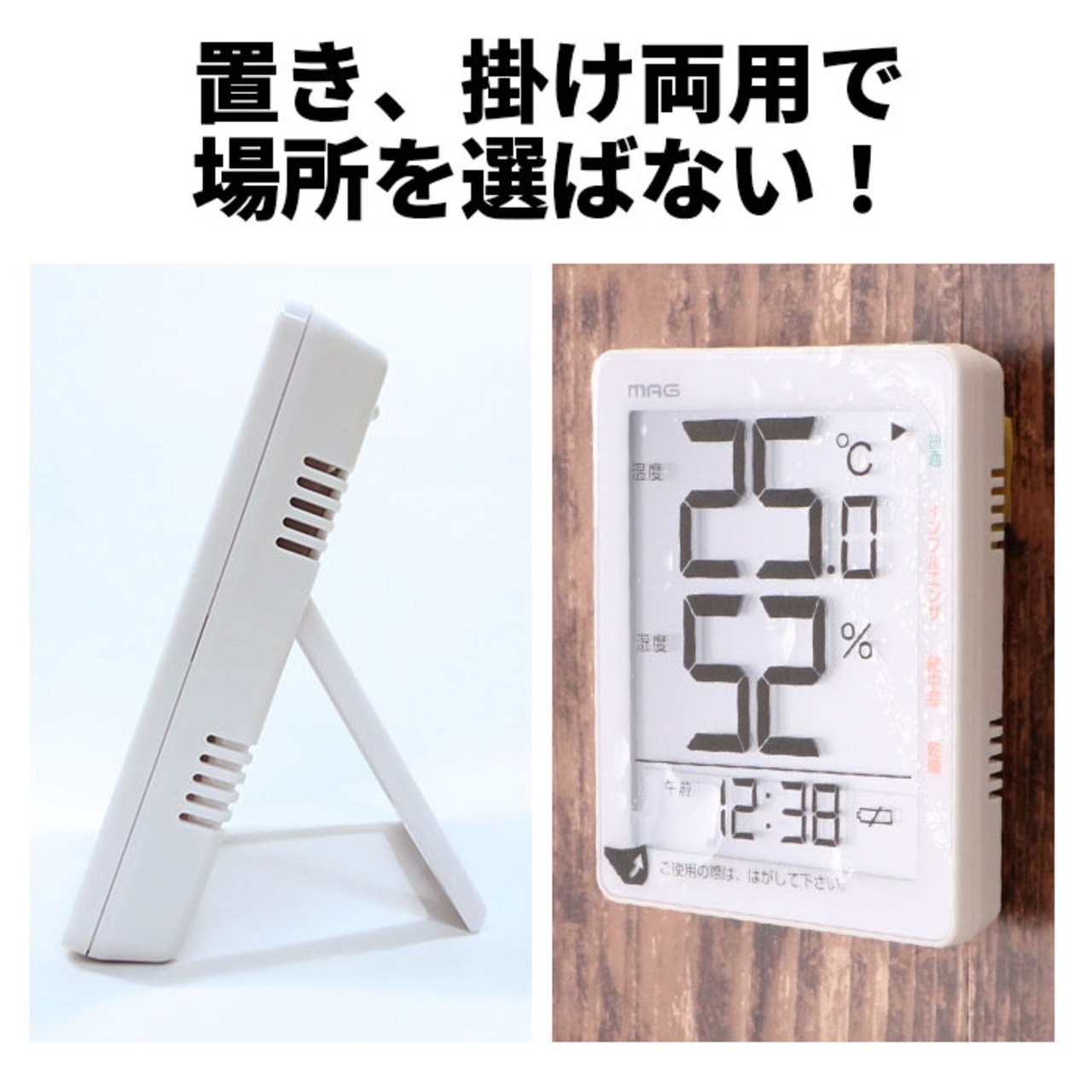 ・温度・湿度のバランスをチェックして、快適な室内環境づくりをサポート!見やすくて使いやすい、デジタル温度湿度計。