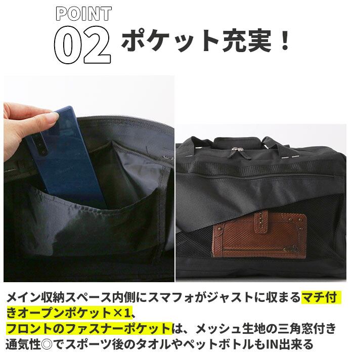 ・三角形のメッシュで中身が見えるフロントポケットが印象的!TIGER LABEL(タイガーラベル)の大容量ボストンバッグ。