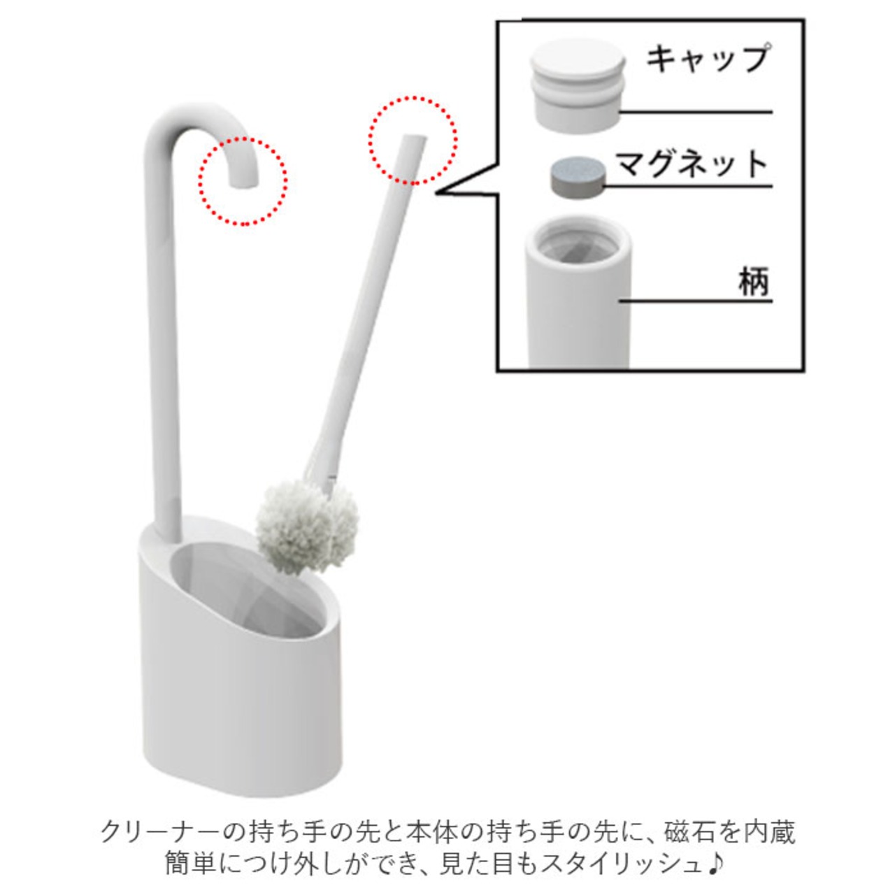 ・クリーナーの持ち手の先と本体の持ち手の先に、磁石を内蔵。簡単につけ外しができ、見た目もスタイリッシュ♪