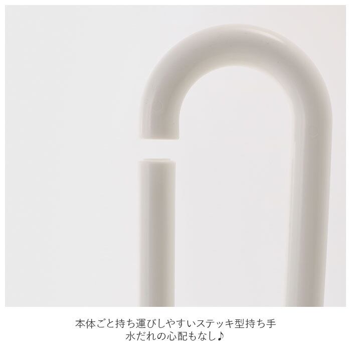 ・本体ごと持ち運びしやすいステッキ型持ち手。水だれの心配もなし♪