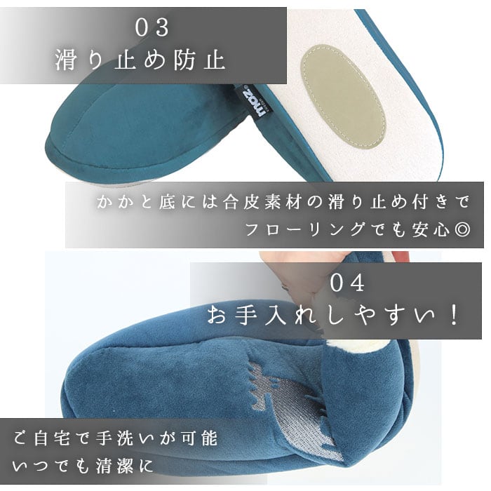 ・かかと底には合皮素材の滑り止め付きで、フローリングでも安心◎