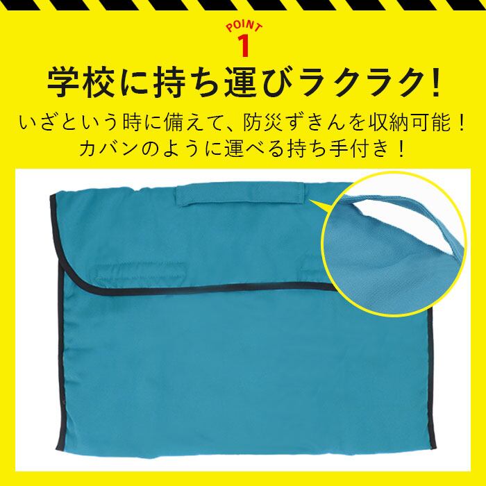 ・いざという時に備えて、防災ずきんをすっぽりと収納可能。カバンのように持ち手付きだから、学校への持ち運び・持ち帰りがラクチン。
