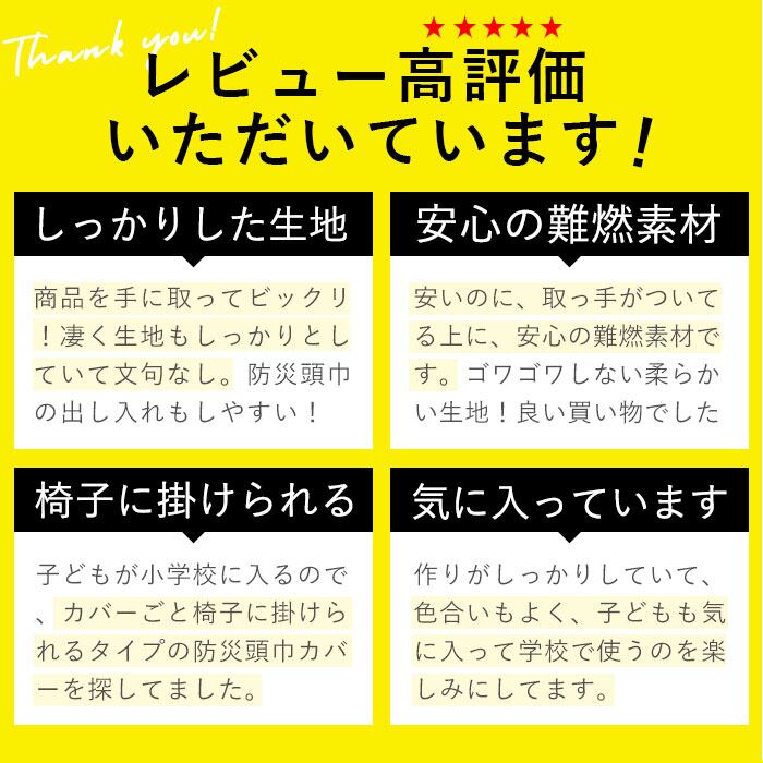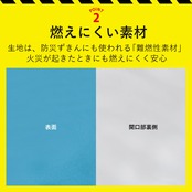 ・生地には、防災ずきん本体にも使われる難燃性素材を採用しているので、火災が起きたときにも燃えにくく安心。