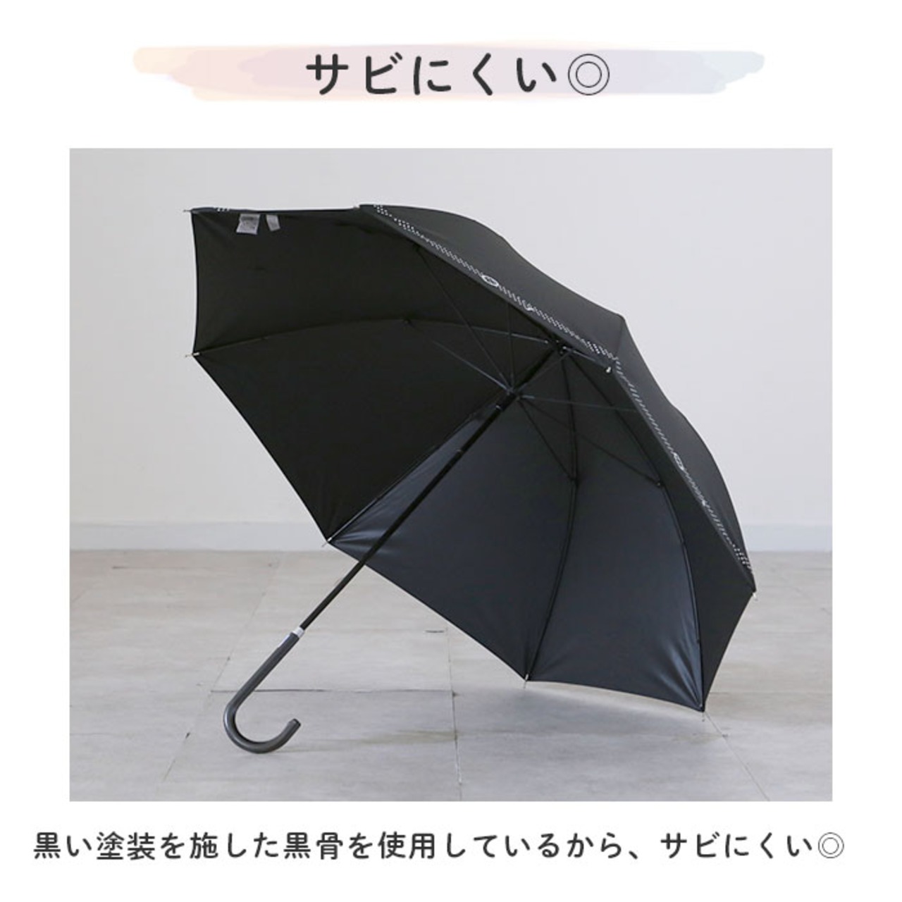 ・黒い塗装を施した黒骨を使用しているから、サビにくい◎