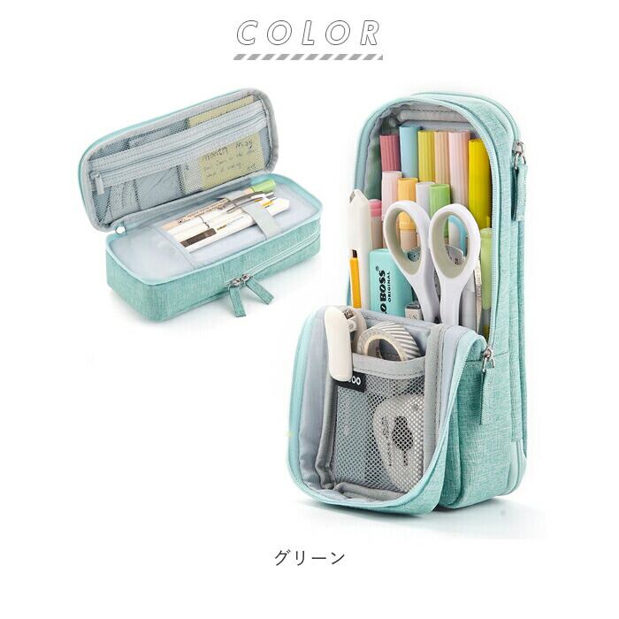 ペンケース 大容量 通販 自立 スタンド シンプル 大人 子供 多機能 筆箱 ビジネス 文房具 高校生 大学生 タテヨコ ペンポーチ 帆布 おしゃれ