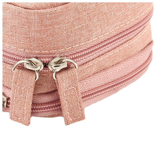 ・前面ラウンドファスナーを開けて、開口部を外側に折り返してマグネットで留めれば、ペンケースがしっかりと自立。