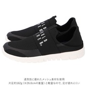 ・通気性に優れたメッシュ素材を使用。片足約162g(※26.0cmの重量)と軽量なので、足が疲れにくい。