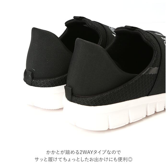 ・アッパーのゴムが足のフィット感をUPしてくれる♪かかとが踏める2WAYタイプなのでサッと履けてちょっとしたお出かけにも便利◎