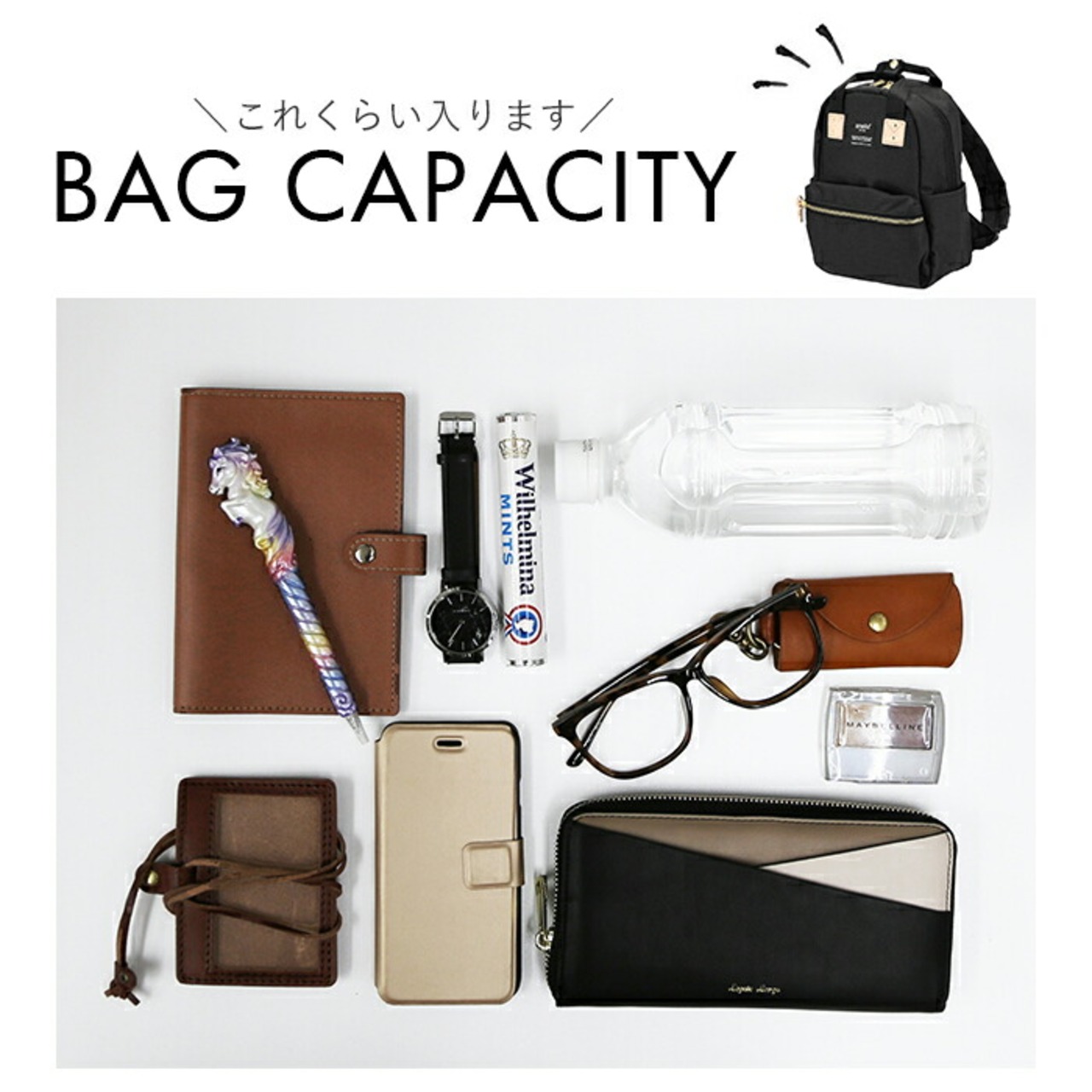 ・フロントのファスナーポケットにはマチが程よくあり、スマートフォンや文庫本など、小物がサッと取り出せて便利!