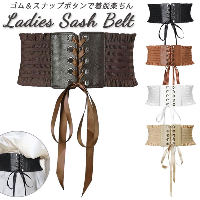 ベルト レディース 太 通販 サッシュベルト コルセット レースアップ ワイドベルト カジュアル リボン 大人 可愛い かわいい シンプル ウエストマーク ブラウン 黒 ブラック おしゃれ 女性 べると