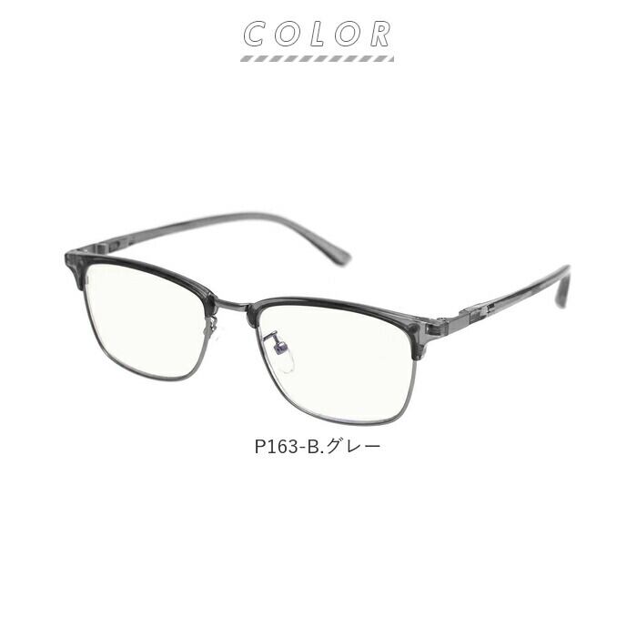 ・バイフォーカルレンズとは、レンズ上部が素通し部分(遠くを見るレンズ)、レンズ下部が半円状の老眼鏡(近くを見るレンズ)になった機能的なレンズ。レンズの境目が分かりづらく、パッと見はお洒落なファッショングラス。
