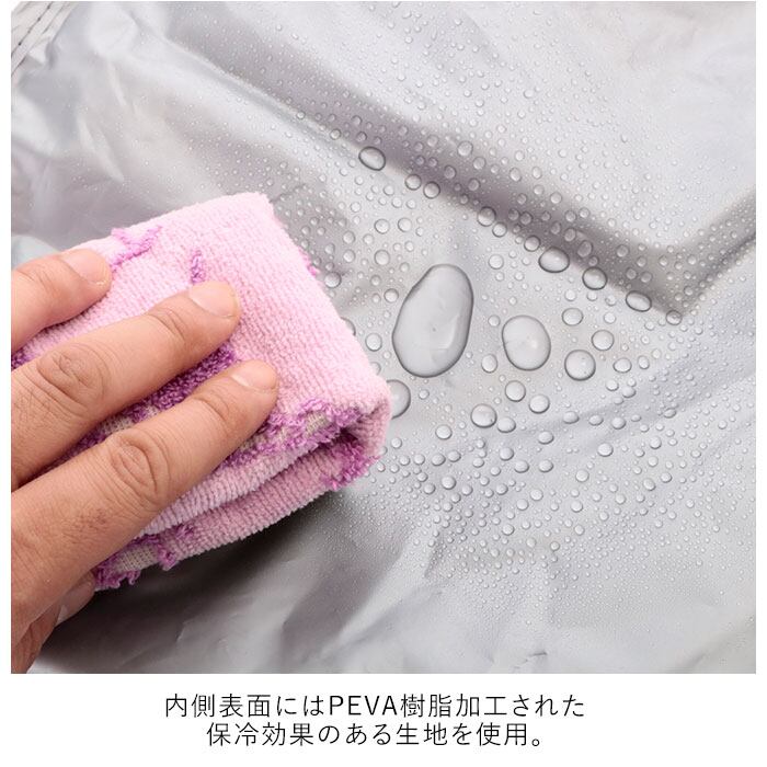 ・トートバッグ内側表面にはPEVA樹脂加工された保冷効果のある生地を使用。内側が汚れた時には、裏返してサッと拭きとればお手入れも簡単。