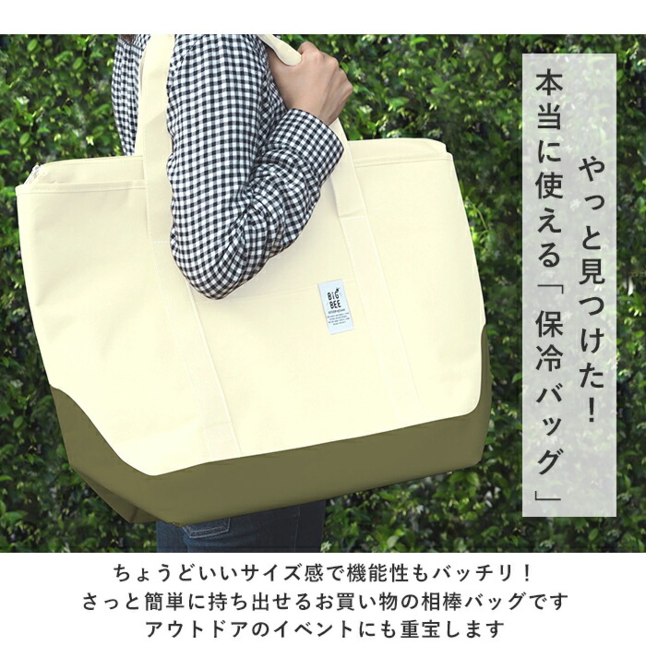 ・美味しくおしゃれに持ち歩こう!BigBee・保冷のできるクーラートートバッグ、大容量Lサイズ。